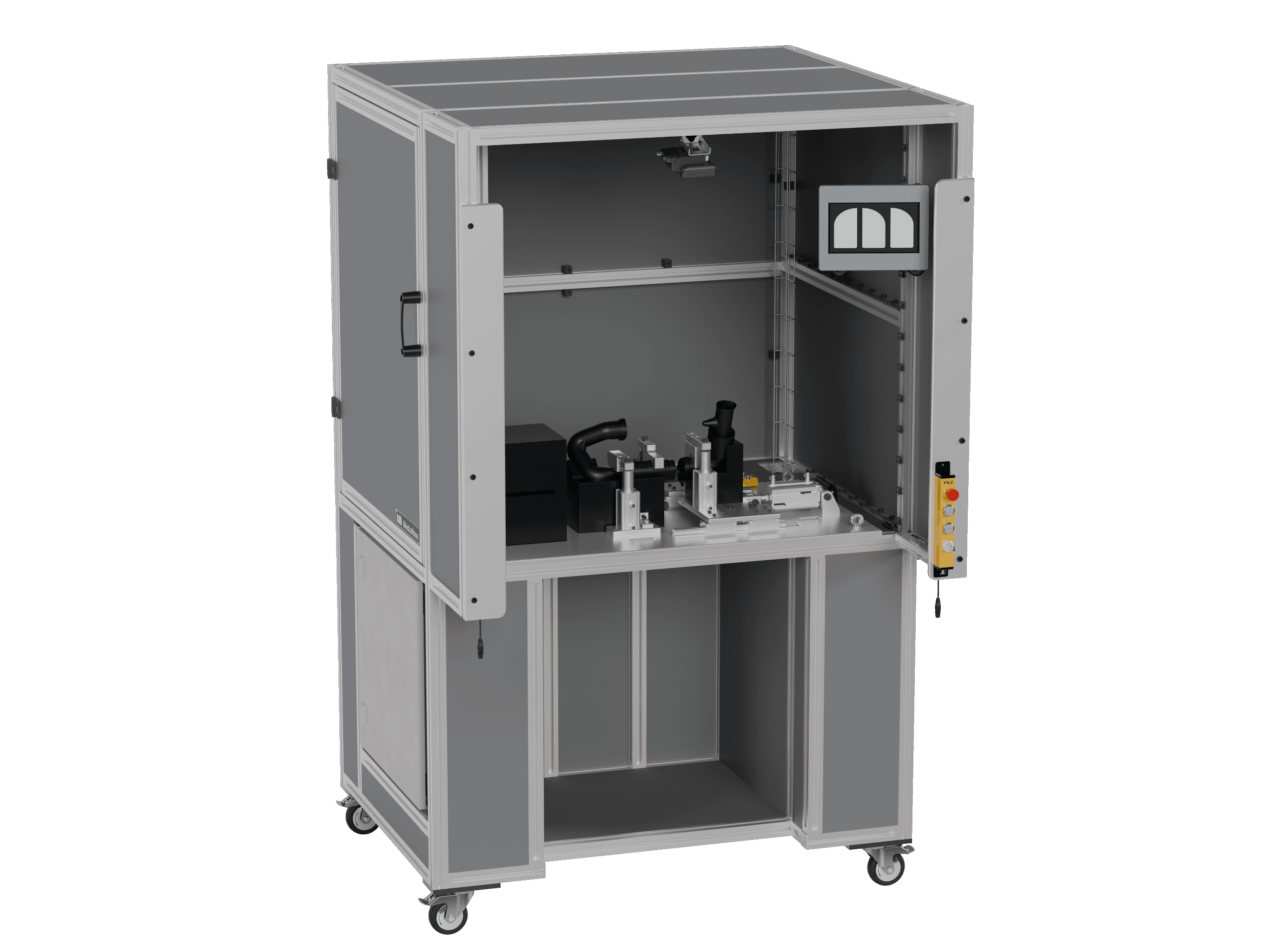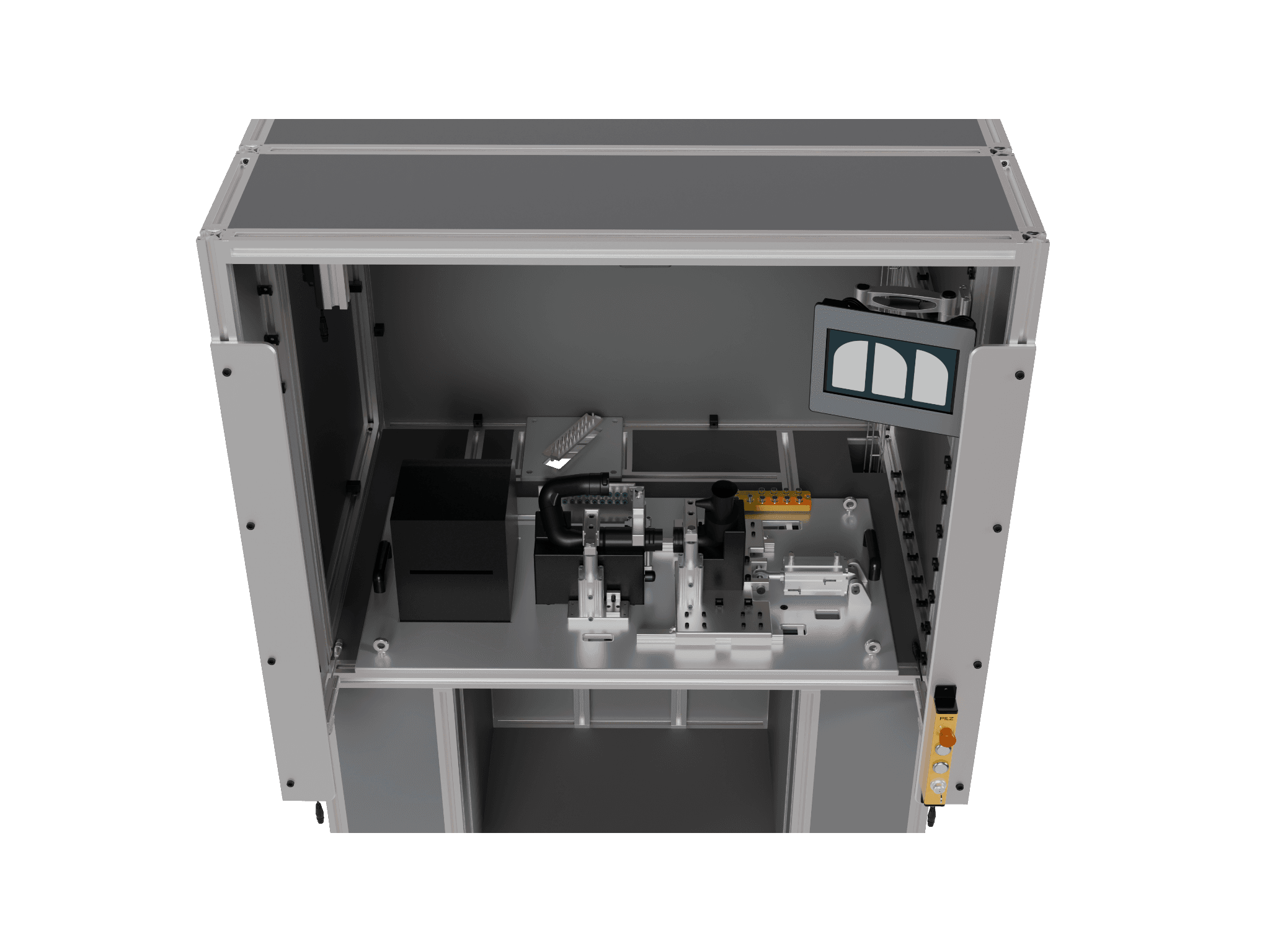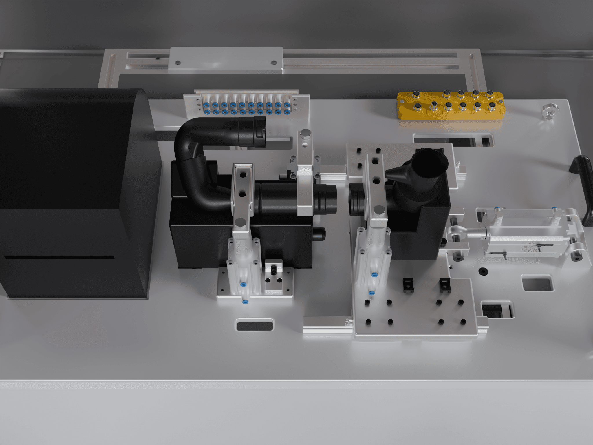A semi-automated workstation was designed to remove the manual force required for the press-fit assembly process. Pneumatic actuation was used to apply the required assembly force in a controlled and repeatable manner, while custom fixturing ensured accurate positioning of the components. A vision system was integrated to inspect key product features during assembly, and the system was delivered with a full BOM and manufacturing drawings to support fabrication.