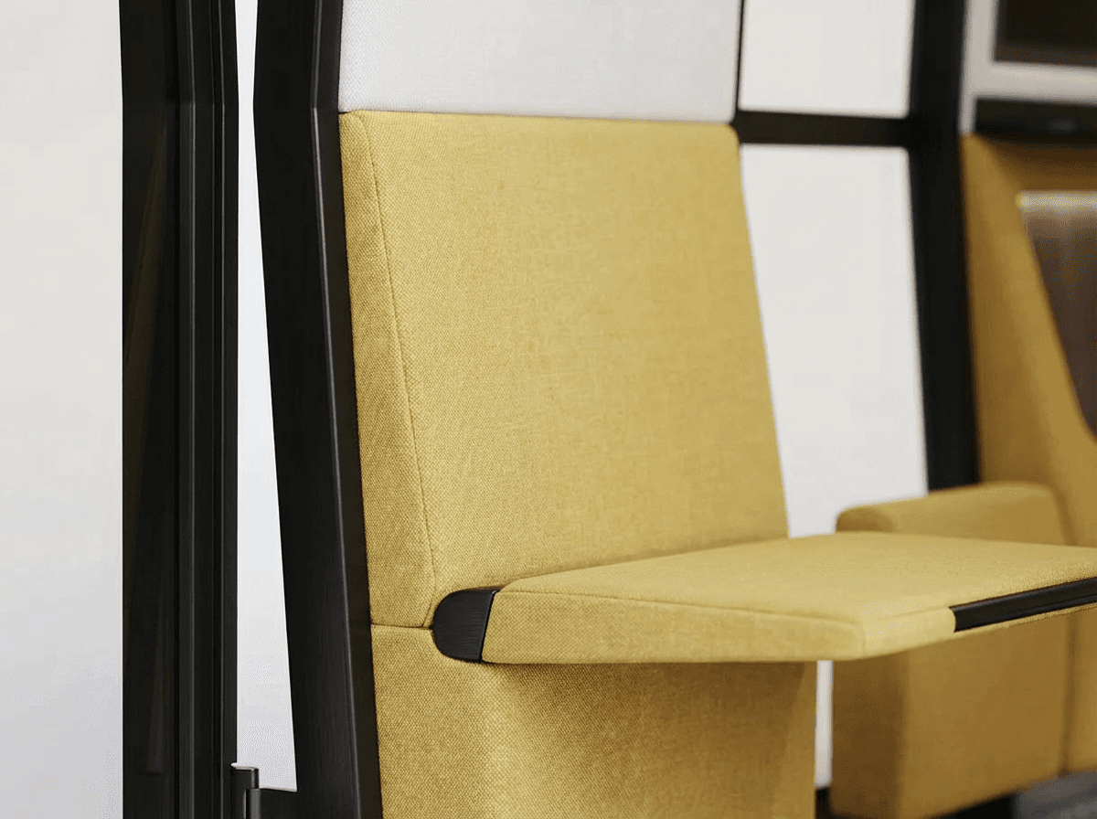 Design of a compact flip-seat mechanism for a chair/nook application, requiring smooth, repeatable motion within a constrained envelope.